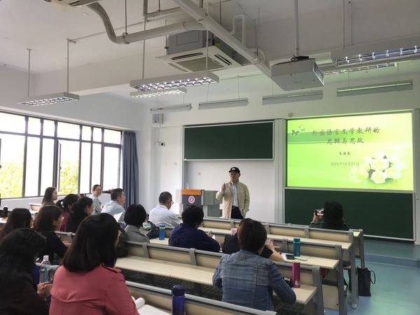 10月21日下午,大学英语教学部在闵行一教219教室召开2020年校庆学术报告会。上海师范大学外国文学研究中心主任朱振武教授做了关于“外国语言文学教研的思辨与思政”专题报告。外语学院副院长朱晓映教授主持会议,大学英语教学部主任严文庆副教授做总结发言,全体大学英语教学部教师参加了此次研讨会。
