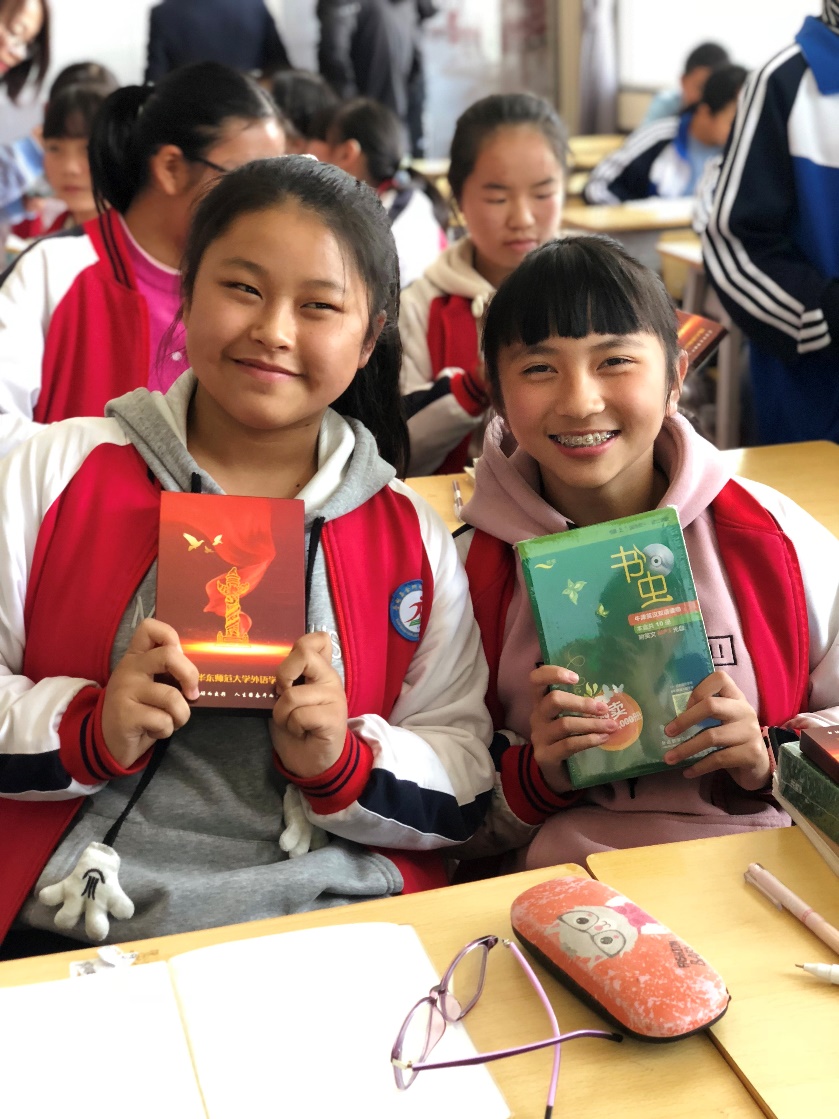 10月23日,华东师大调研寻甸县扶贫工作座谈会在寻甸县人民政府举行。外语学院党委副书记江宇靖和寻甸县金所中学校长张卫强为英语能力提升项目揭牌。团委书记周俊辰以及团队志愿者王彤、何琰参加了揭牌仪式。下午师生一行来到金所中学进行调研,并开展现场教学活动。座谈会上,江宇靖向金所中学为我院师生提供实践育人机会表示感谢,并就项目前期实施和拟推进的教师培训、学生社会实践等与金所中学进行了沟通交流。双方达成长期实行英语教学帮扶项目的共识。江宇靖代表外语学院向金所中学赠送由我院虞苏美老师翻译的《三国演义》全套英译本,传达美好期望。