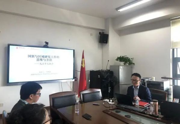 聘书颁发仪式后,陈晓晨研究员为在场师生做了题为《国别与区域研究工作的思维与方法:几点个人体会》的专题报告。他围绕思维与方法两个维度,从时代要求、学科要求和外语学科发展的自身动力出发,讲解了外语学科发展国别与区域研究的必要性与路径,系统分析了学术研究与智库研究在国别与区域研究工作中的不同作用,并就如何在实际工作中提供不同类型的研究成果与在场师生深入交流。他认为,学理探究是国别与区域研究的基础,经世致用是国别与区域研究的价值,国别与区域教学是着眼长远的人才培养之举,要教学与研究相长,学理探究与经世致用相融,多学科相互学习,共同促进外语学科在新文科建设目标下的国别与区域教研工作。