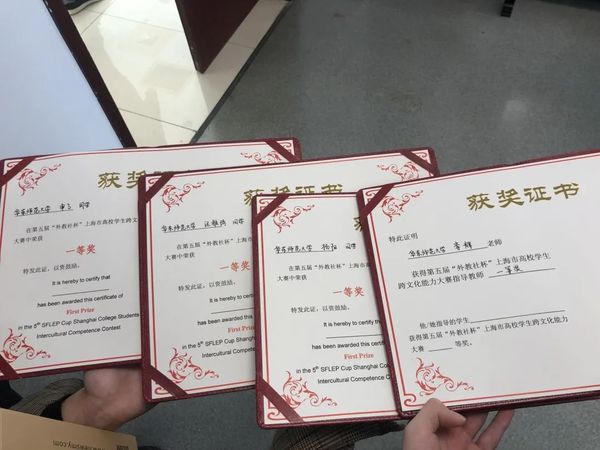 我校参赛队伍由外语学院李辉老师担任指导教师,参赛队员为翻译专业的汪雅琦同学、应用心理专业的申了同学和杨阳同学。在决赛中,我校参赛队表现出色,最终斩获一等奖,并将和复旦大学参赛队一起代表上海市晋级参加明年上半年的全国总决赛。