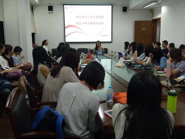 2017年6月8日,外语学院新老生经验交流会在外院学院319会议室正式举行。本次经验交流会共分为三场,分别是就业指导交流会,实习指导交流会,论文写作指导交流会。邀请的学长学姐与大家分享了自己的宝贵经验,并为在场同学们有针对性地答疑解惑,同学们受益匪浅。