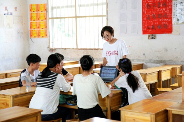 千里外的华东师范大学,黄瓦红墙,象征着最高学府的学术人文;此时的江口中学,青山绿水,栽下的是年轻学子的求学梦。虽然远隔千里,但志愿者们就如同一阵微风,将这些稚嫩的华花郎吹向梦想的远方,更是无限可能性的未来。(撰稿:陆薇亦;摄影:冯园园)