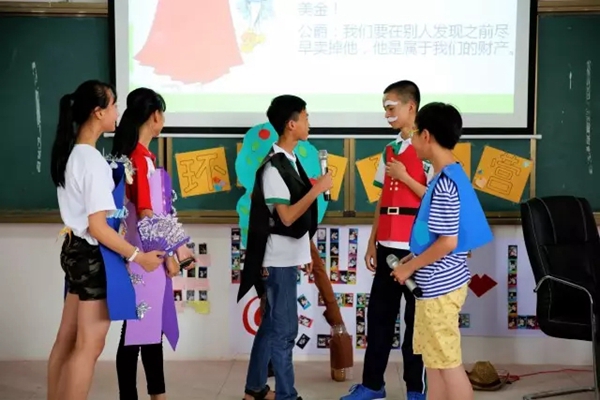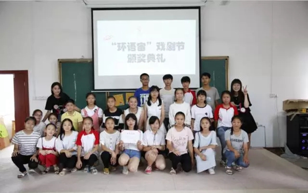 下午三点,环语宙戏剧节暨夏令营结业仪式在江口中学四楼会议室举行,江口中学的校长湛平老师,副校长谢发明老师,副校长陈其中老师,环语宙一班班主任俞增洁老师,华东师大外语学院的叶青和冯园园老师出席了仪式。正如湛平校长在致辞中所言:因为梦想,我们在此结缘。盛夏炎热的天气,丝毫不会影响到小老师们和孩子们的追梦的热情。在这里,每个人都不忘初心,砥砺前行。