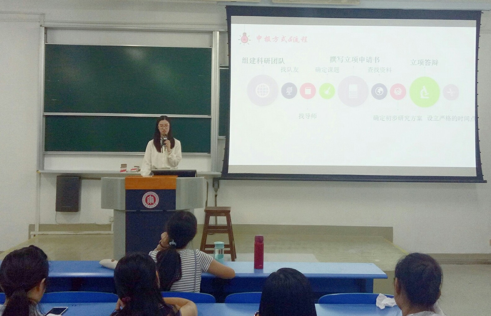 2017年9月11日晚18:30,针对即将到来的科创立项申请时间截止日,外语学院学生会学术与科创中心于第三教学楼107教室举办了科创宣讲会。此次宣讲会的主讲人为2016年本科生培育项目成功立项者、2015级英语系3班班长沈依沁同学。