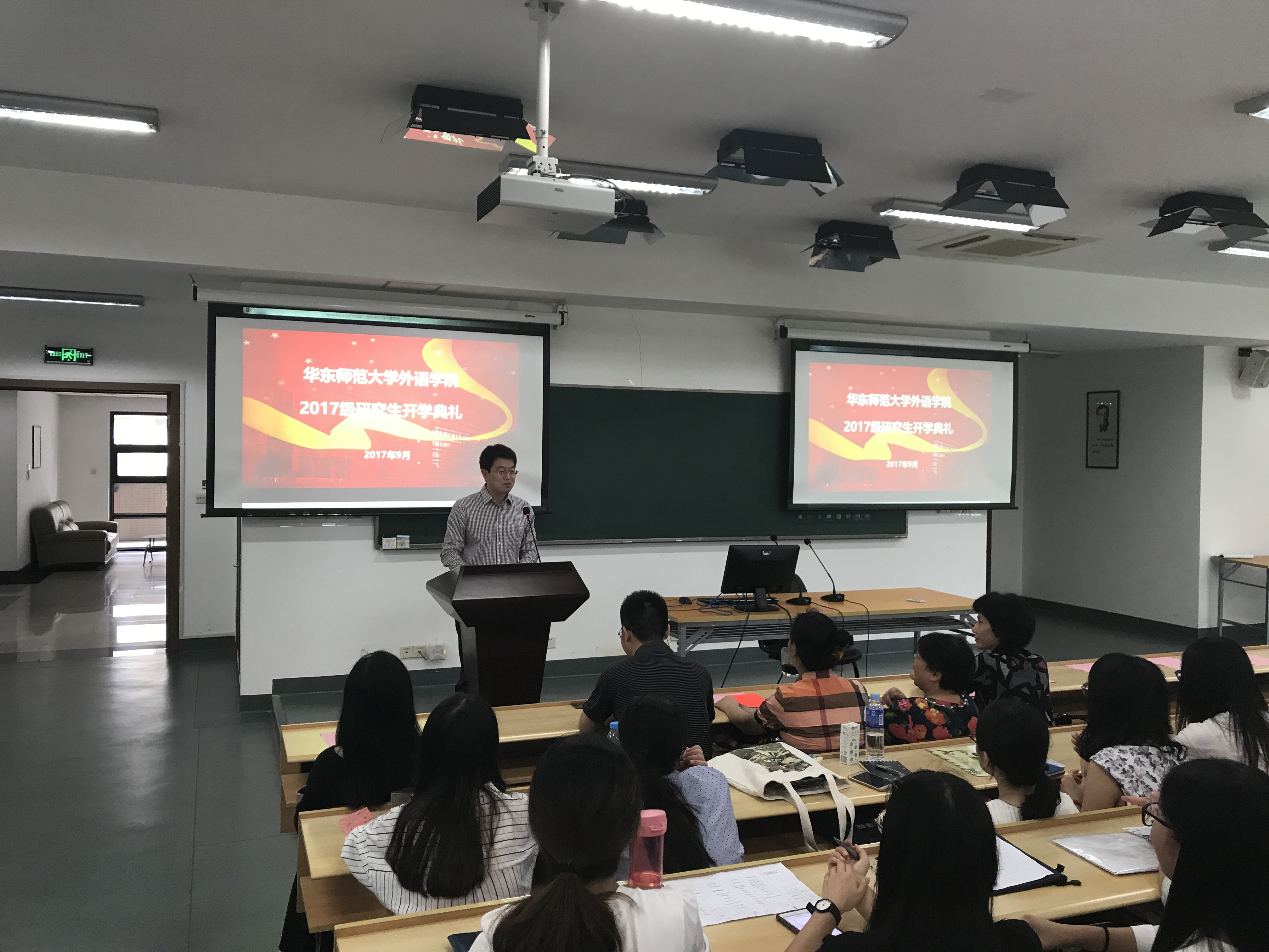 2017年9月13日上午,华东师范大学2017级新生开学典礼在闵行校区东操举行,外语学院全体研究生新生现场聆听了校党委书记童世骏的讲话,童书记勉励学生们勤奋努力、劳逸结合、敢于创新,能够承担起“智慧的创获,品性的陶熔,民族和社会的发展”这一华东师大人的责任。