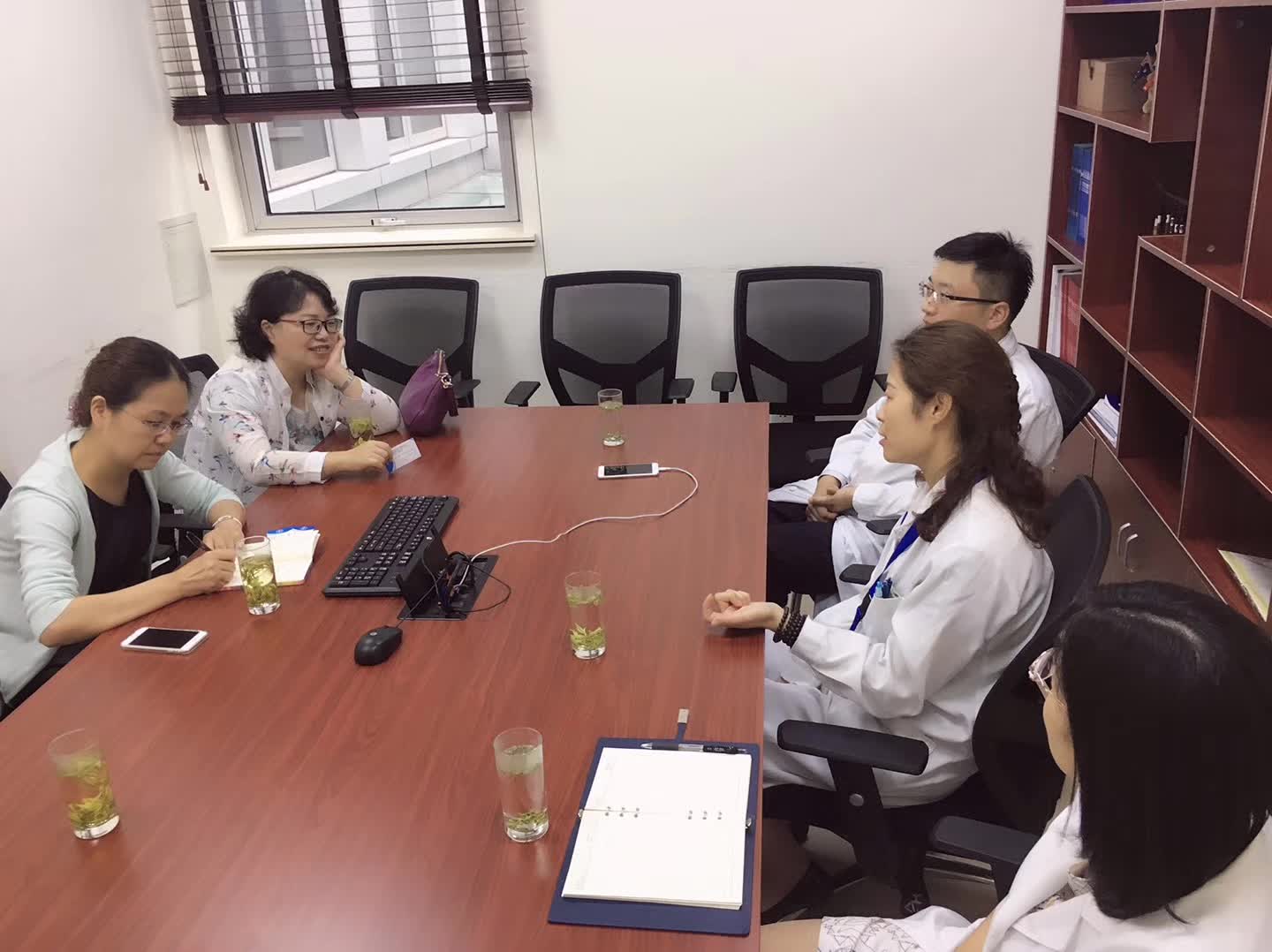 9月22日下午,外语学院大学英语党支部书记苏俊玲与大学英语教学部副主任王珏一行来到仁济医院东院,与该院的特需与体检联合支部就支部共建、党员发展等问题进行了深入的交流,仁济医院特需与体检联合支部书记李瑾、支部委员王春鸣、周莹参加了此次会谈。