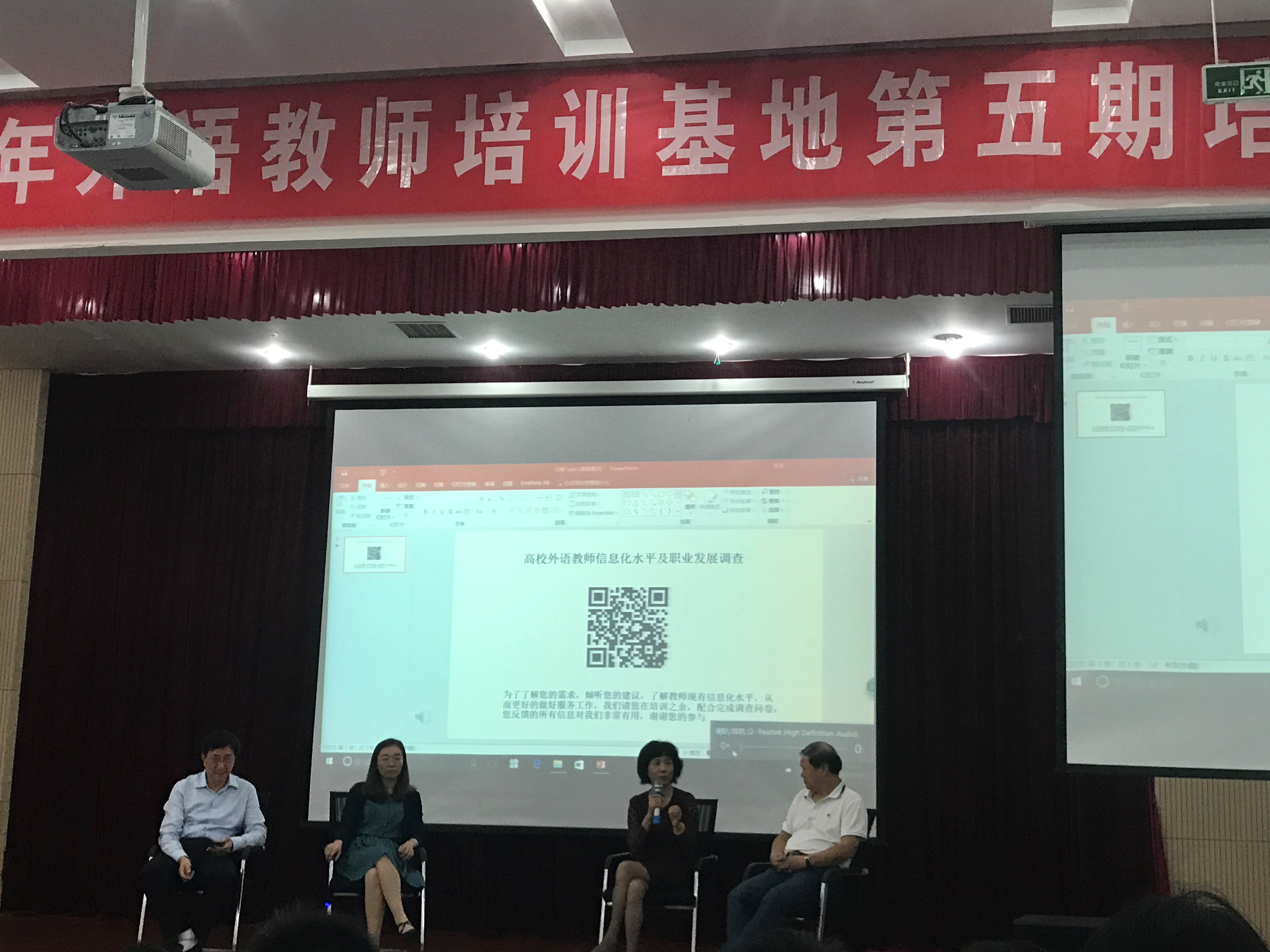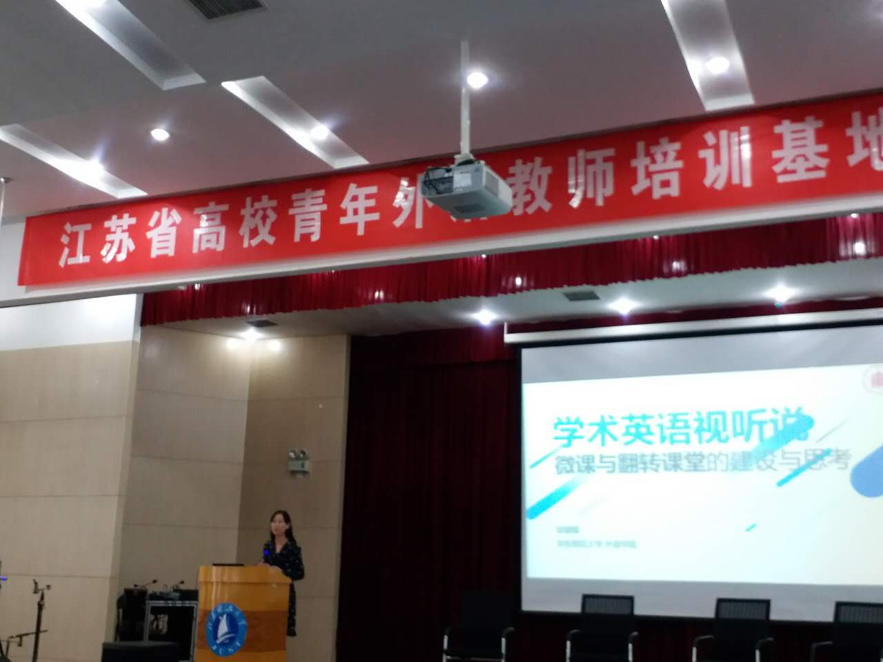 2017年9月22日至24日,江苏省高等学校外国语教学研究会在镇江举办了华东地区高校第五期培训班,本次培训的主题为“从微课到在线开放课程:理论与实践”。来自全国各地的高校英语教师参加了这次培训。我院副院长朱晓映教授作为特邀点评嘉宾带领徐璐璐老师和赵国霞老师参加。