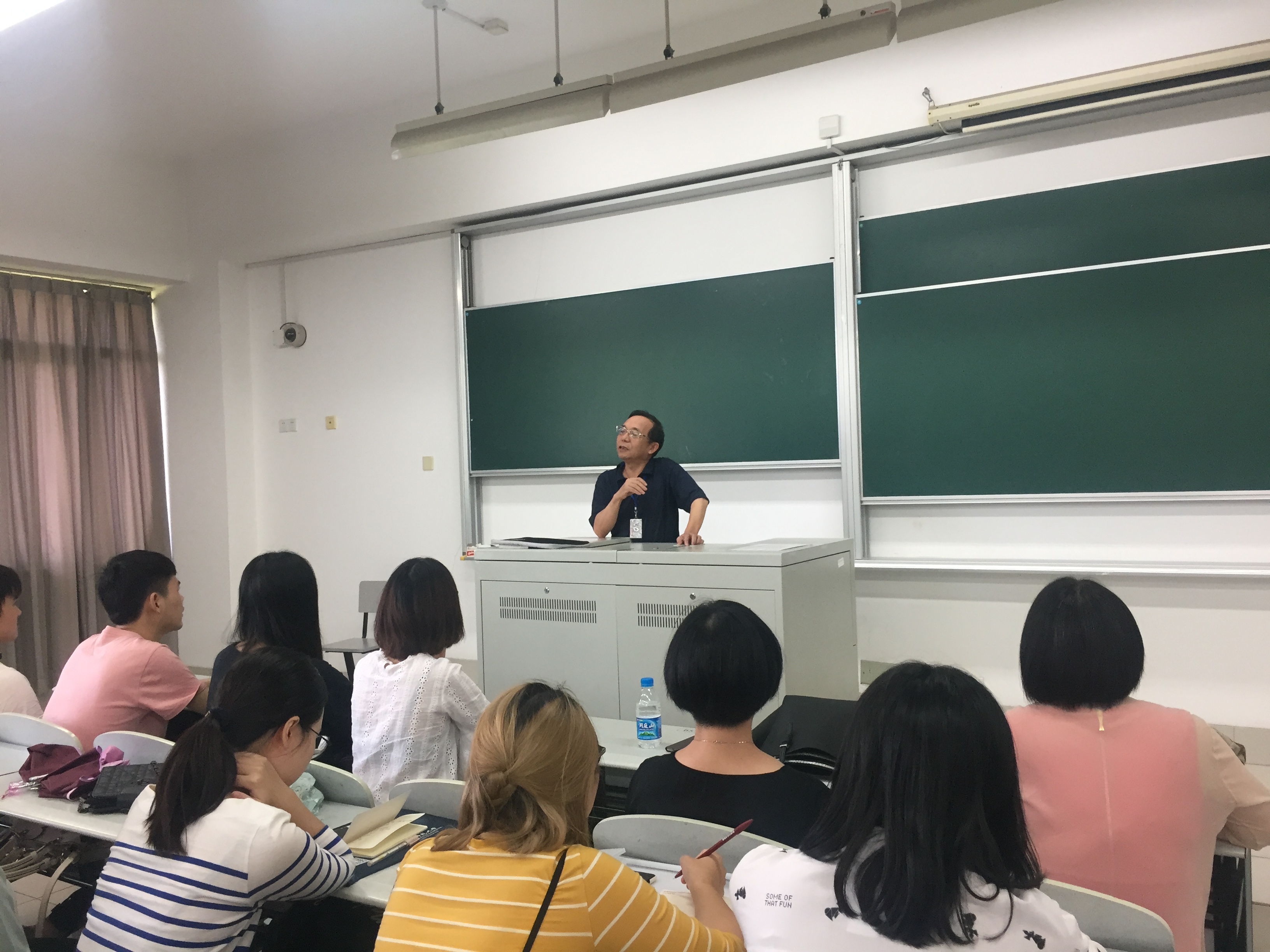 翻译系系主任窦卫霖老师首先致辞,对新生的到来表示热烈欢迎,同时介绍了翻译系的基本情况,分析了当今社会在生活方式、学习方式、交往方式和行动方式的四大转变,并希望学生以乐观、进取、独立和合作的态度应对这些转变,表达了对新生在我校快乐生活、学有所成的期待。随后,张春柏老师向新生讲述了他在华师大四十年的学习工作生涯和感悟,并鼓励学生多看书,广泛汲取知识。翻译系各专业老师分别上台介绍了自己的主要研究方向,并对新生提出希望和要求,鼓励学生们多参加各类比赛和活动,学习之余多锻炼身体等等,展示了我院教师学识渊博但又亲民可爱的一面,学生们备受鼓舞,深受启迪 。见面会接近尾声,在场许多研究生新生都向自己心仪的老师表达了希望选择他/她作为导师的期待,展现出师生互动的积极场面。(撰稿:17级口译夏搏婷)