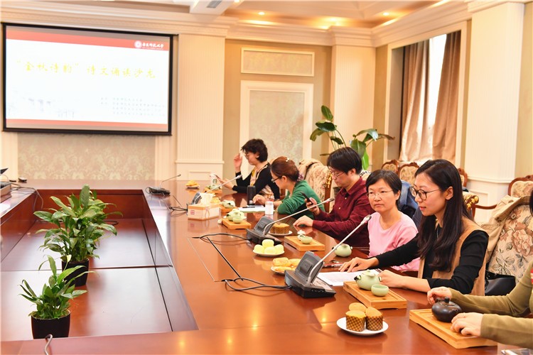 11月3日下午,作为校文化建设项目“樱桃河左岸读书交流活动”之一,外语学院和华东师范大学出版社共同策划的“金秋诗韵”诗文诵读沙龙成功举行。校工会常务副主席王平、上海市教育工会宣教部部长沈瑶、华东师大出版社编辑、著名诗人胡岗等应邀出席了活动。活动由校女青年教师联谊会理事长、哲学系党委书记杨海燕主持。