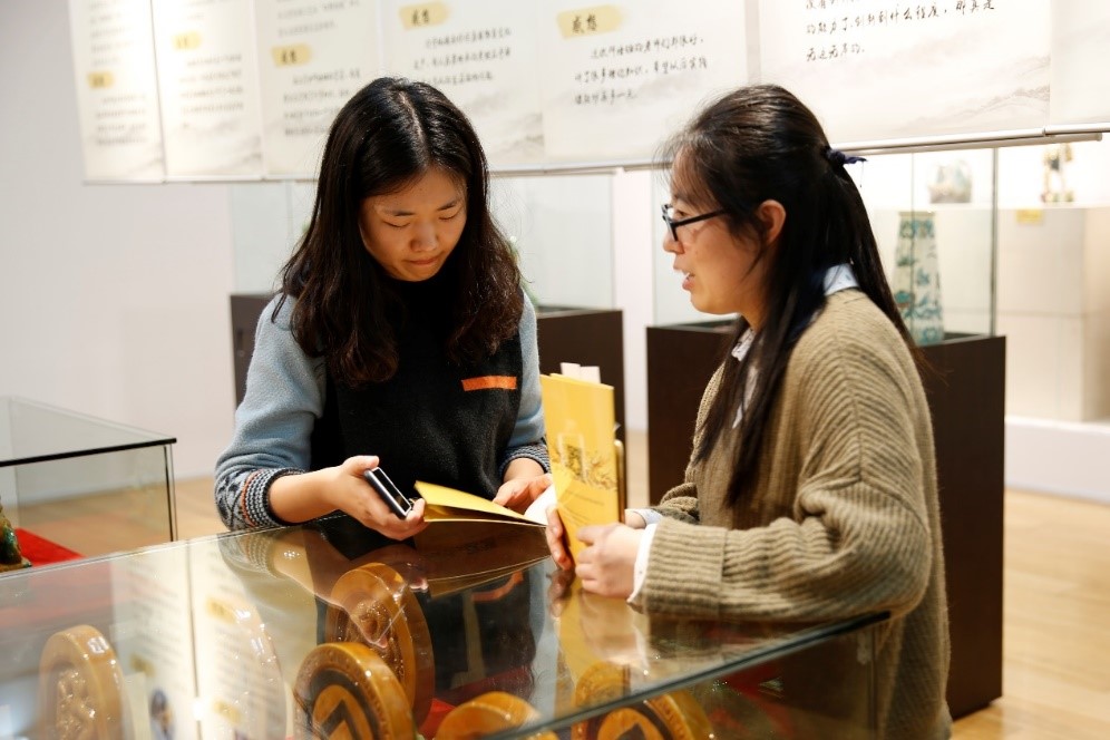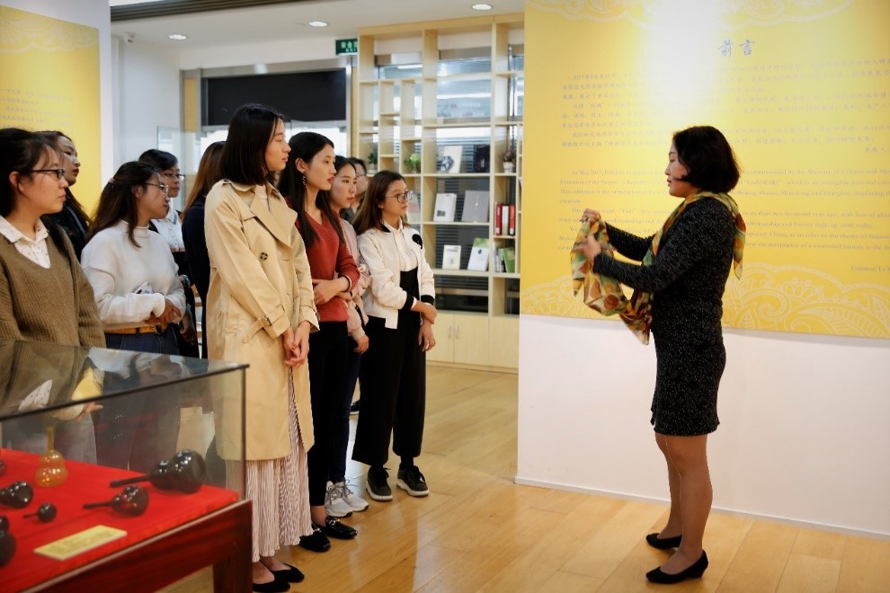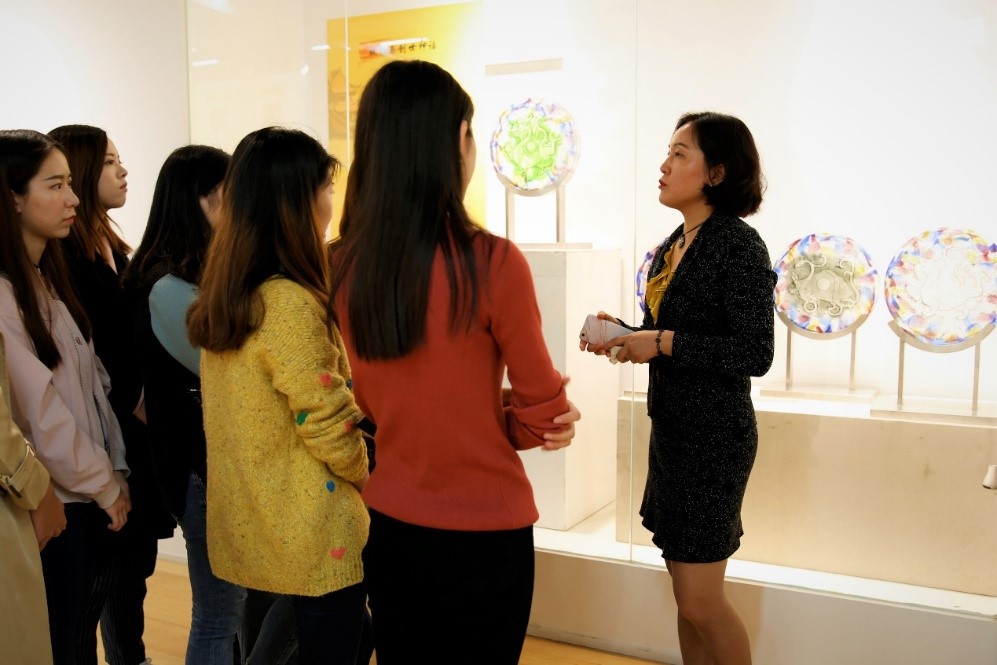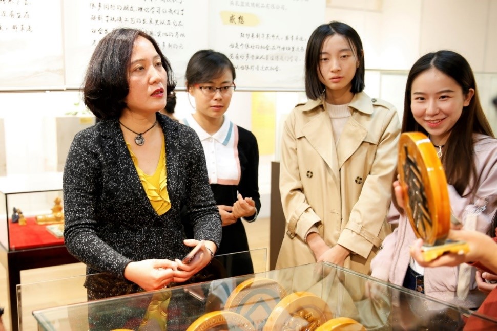 11月3日下午13点,在华东师大闵行校区图书馆二楼展厅,外语学院组织研究生参观了琉璃制作技艺普及培训班成果展览会,作为校文化建设项目“樱桃河左岸读书交流活动”之一,活动邀请了华东师范大学民俗学研究所李明洁教授,为我院学生进行主题为“技艺、记忆与文化传统” 的通识文化专题导览。