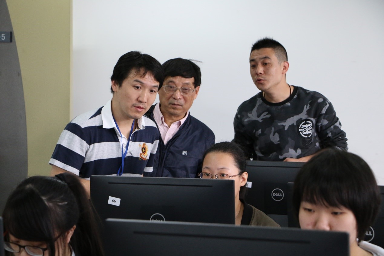 指导老师在比赛现场观看整个比赛的进程,也为选手们加油鼓劲。在赛后,也组织学生进行了自我反思。