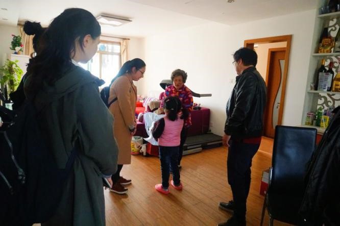 老师和同学们提前向居委会了解到了孩子的健康以及学习的情况。随后他们来到孩子的家中给孩子送去了书包、书籍和一些学习用品,并向她的爷爷奶奶了解她最近的生活状况。老师和同学们表示如果孩子今后有任何学习上的困难,尤其是外语学习方面的困难,他们都会尽全力帮助孩子克服。