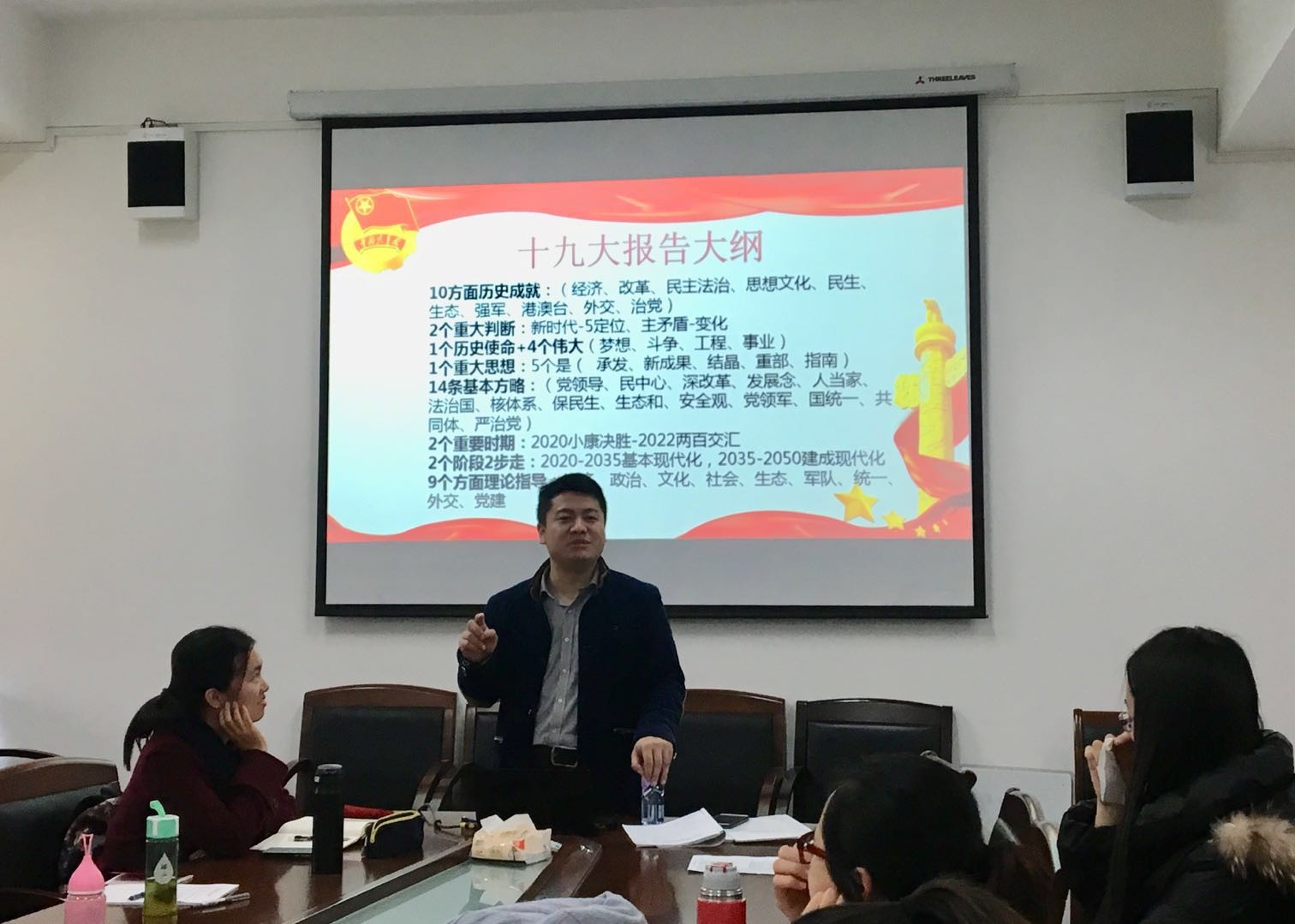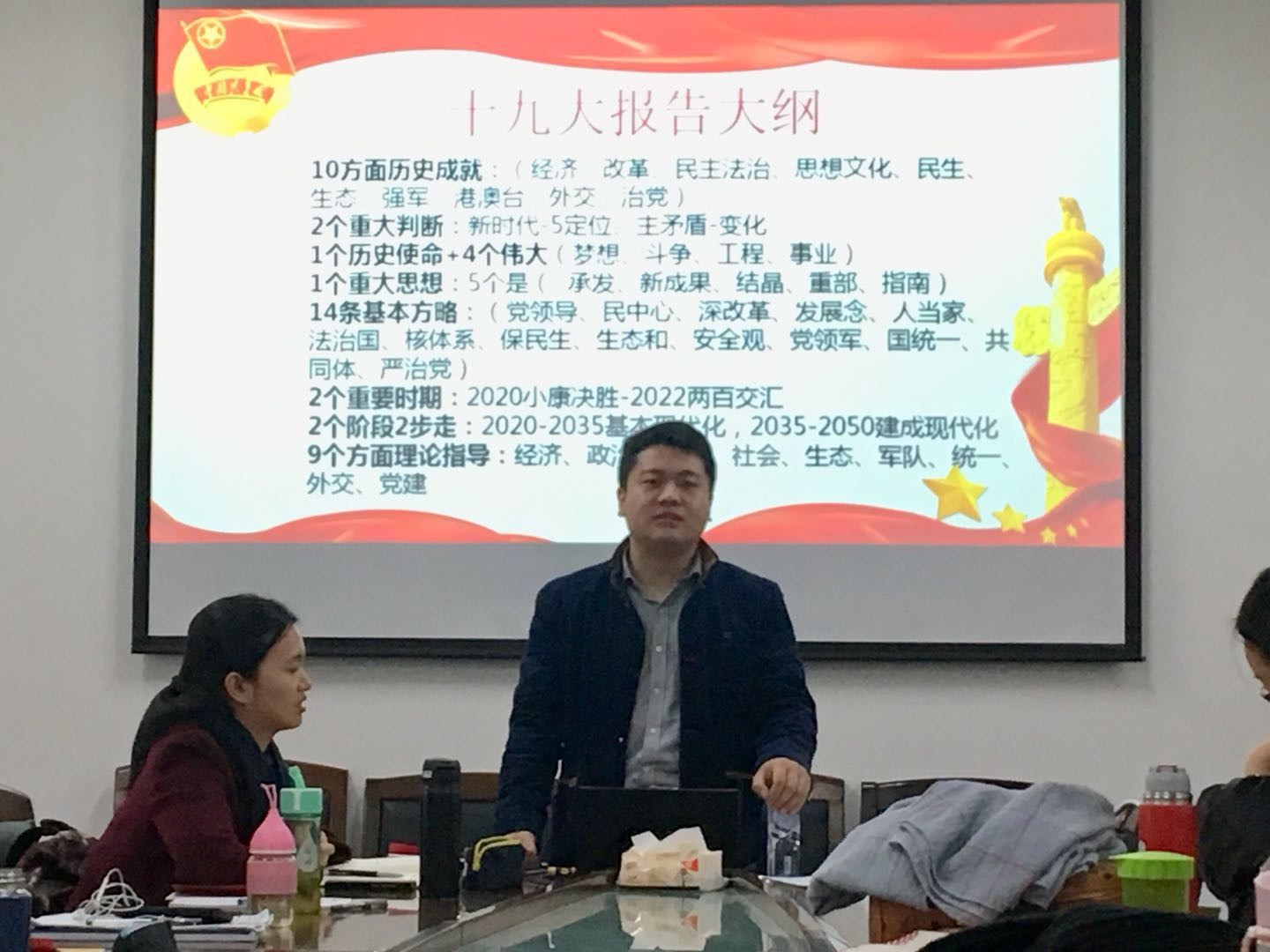 2017年12月13日,学院邀请校团委副书记梁宏亮老师为入党积极分子培训班做了题为《勇做担当民族复兴大任的时代新人——学思践悟党的十九大精神体会分享》的专题辅导。
