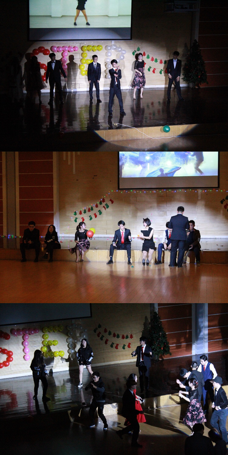 本次舞会还进行了“闭眼找舞伴”的游戏,以增加舞伴间的默契度。最后,来自上海交通大学国标舞社团的两位同学为大家现场教学伦巴舞,同学们纷纷热情地学习。