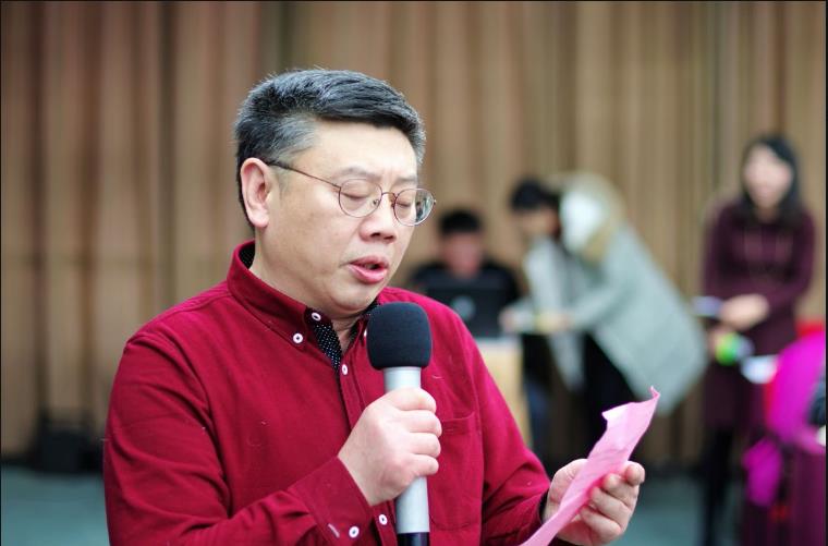外语学院院长袁筱一老师在联欢会上致新年贺词。袁筱一向在场的教职工送上了新年祝福,对全体教职工一年来的辛勤工作和无私奉献表示感谢,并带领大家回顾了学院在2017年各项工作中所取得的骄人成绩。