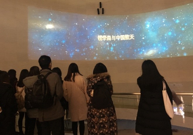 在讲解员的引导下,同学们依次参观各个展厅,了解了钱学森同志在航空航天事业、空气动力学、工程控制论和现代科学技术体系上的诸多建树,感受到了钱老严谨求实的科学态度,被钱老爱国、奋斗、淡泊名利的卓越一生深深打动。随着参观,同学们对钱老的爱国精神及奉献精神也有了更深层的理解和感悟。大家对钱老的认识不再限于“中国导弹之父”、“火箭之王”等,同学们逐渐了解了这位卓越的科学家一路走来的艰辛,在心中建立起了一个栩栩如生又高大伟岸的形象。 “我的事业在中国,我的成就在中国,我的归宿在中国”,钱老的肺腑之言中流露出的不仅是他回国的迫切之情,更是一位共产党员、人民科学家对祖国的无限忠诚与深沉的爱。钱学森作为一位科学大家,同时也是一位爱国志士,在他的一生中,他的理想始终与祖国的命脉相连,他的高尚精神和崇高品格永远值得我们学习,是我们每一位同学的学习榜样。