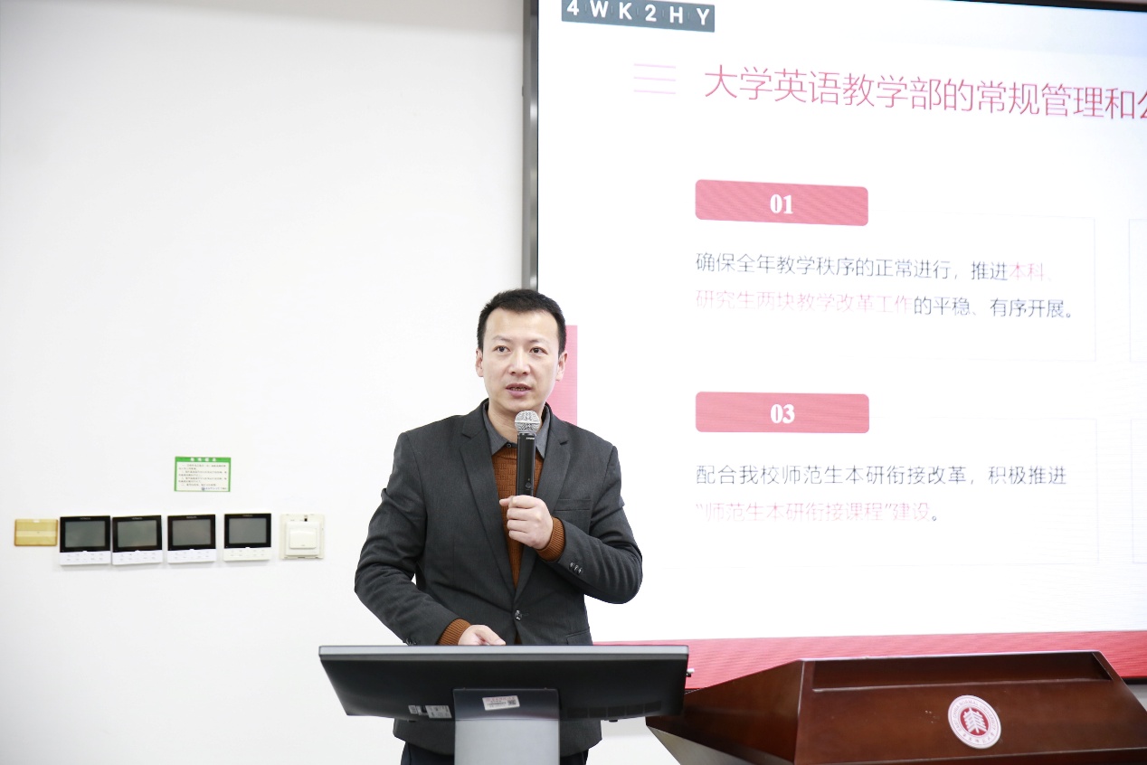 院长杨延宁在年度工作述职中表示,过去一年,外语学院紧紧围绕国家战略需求,主动把握人工智能发展趋势,系统谋划改革发展蓝图,以“双语双科”模式创新人才培养路径;以“文理协同”优化学科布局结构;以“计算语言学”为学科突破关键。学院在布局前沿学科领域、深化人才培养改革、提升国际化水平、建强师资队伍等方面取得显著成效。面向未来的机遇和挑战,外语学院将继续立足国家战略,聚焦学科前沿,持续推进“梦想导向”的有组织科研,进一步激发计算语言学、智能外语教育、区域国别研究及外国文学等方向的发展活力,着力打造具有师大特色的外语学科品牌,不断提升我校外语教育在全国范围内的引领和示范作用,持续为新时代中国外语教育事业贡献“师大智慧”和“师大方案”。