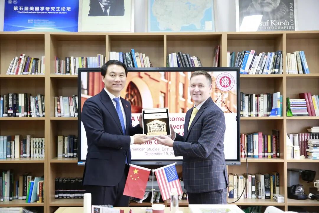 包睿渊领事回应表示,愿意与华东师范大学美国研究中心及外语学院探索新的学术交流机会。他提到,美国驻上海总领事馆与华东师大长期保持合作关系,曾支持美国研究中心的建立,并多次邀请美国学者来校与师生进行学术交流。包领事还表示,2026年将迎来美国独立250周年,总领事馆希望借此重要纪念契机,推动总领事馆与美国研究中心之间,以及中心与美国高校合作伙伴之间在美国历史与文化领域的更多交流机会。