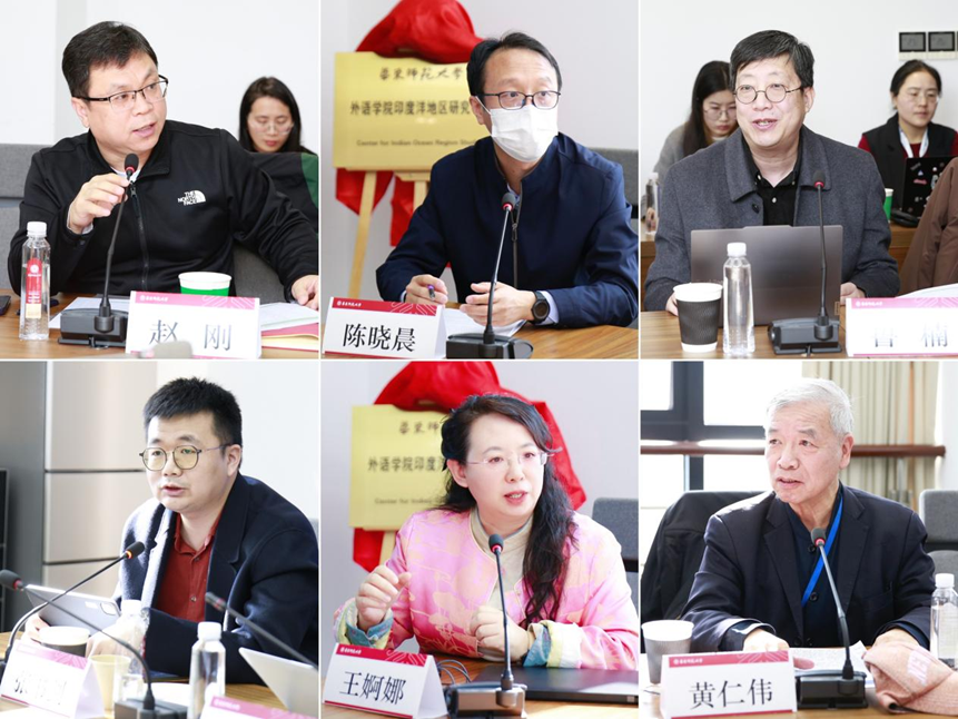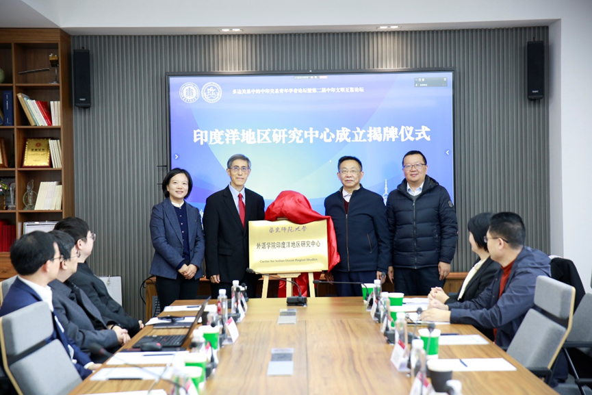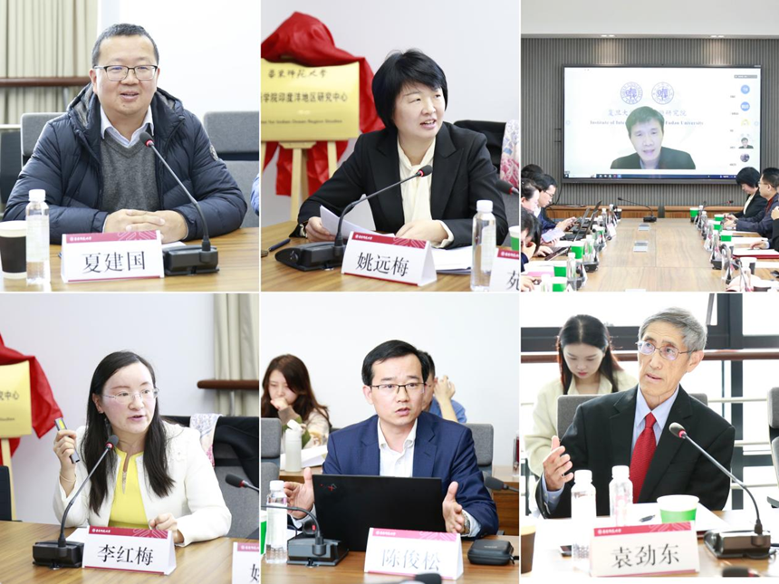 曹友谊、袁劲东和华东师大区域国别研究院执行院长夏建国、外语学院党委书记韩春红共同为“印度洋地区研究中心”揭牌。开幕式由韩春红主持。