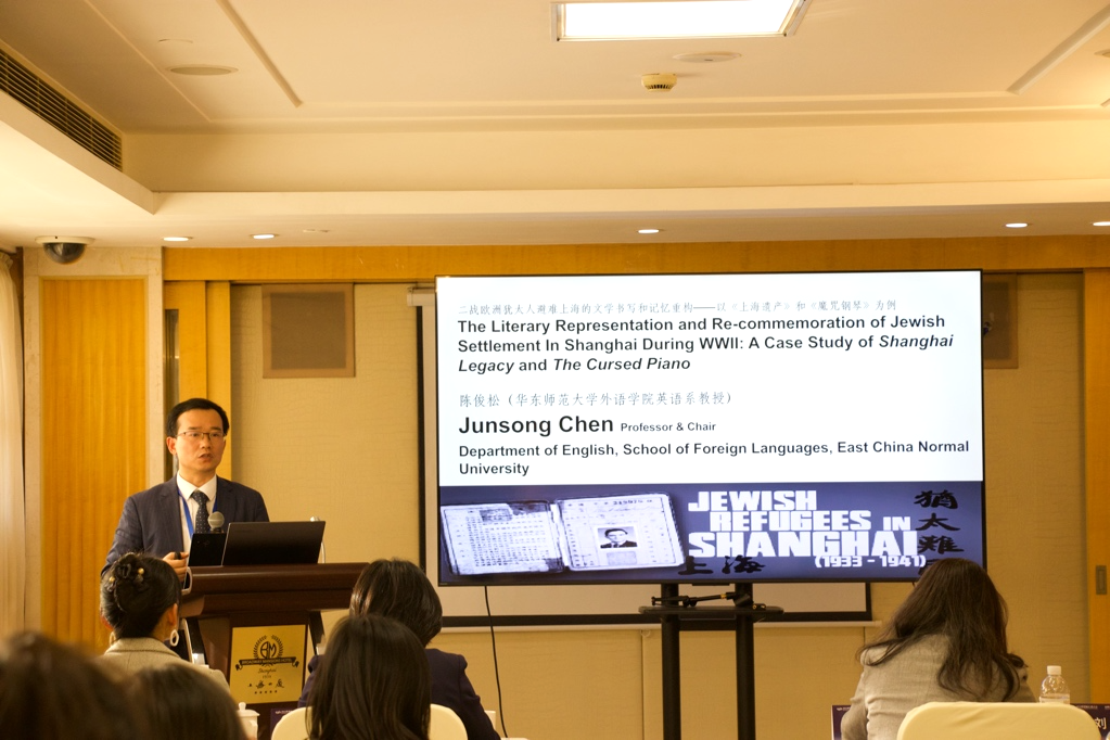 华东师范大学外语学院英语系陈俊松教授做了题为《二战欧洲犹太人避难上海的文学书写和记忆重构》的主旨发言。他首先回顾了历史上犹太人抵达上海的三次浪潮,以再现二战期间欧洲犹太人避难上海这段历史的两部小说《上海遗产》《魔咒钢琴》为研究对象,深入剖析文学在记忆重构中的作用以及和其他记忆媒介相比的独特价值。他指出,《上海遗产》讲述主人公玛雅借翻译母亲去世后留下的德文日记探寻母亲在上海避难的经历、实现母女和解、增强自身勇气的故事;《魔咒钢琴》以钢琴为线索串联跨世纪的爱情,凸显上海犹太难民与当地居民的互动情谊。陈俊松教授指出这类虚构的文学作品已成为保存犹太人避难上海这段经历、重构上海城市历史的记忆场。