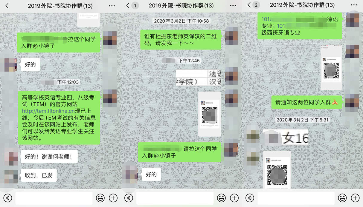 在线上教学期间,外语学院加强和大夏书院、孟宪承书院两大书院的沟通,继续发挥学院、书院在学生学业指导工作方面的合力作用。书院辅导员与学院教务员共同对学生开展多维度调查,包括学生对在线教学的了解及意见、学生参加在线教学有困难的原因及解决办法等,并将调查结果及时反馈给各专业任课教师,帮助老师在教学方案制定中拟定相应对策;通过“书院协作群”,辅导员帮助教务员将尚未顺利进入课程的同学一一拉入班级群,保证“一个都不能少”;针对毕业班,辅导员和论文导师共同督促学生充分利用时间,积极开展文献阅读、论文构思和撰写,让毕业班的学生按原计划完成毕业论文,防止出现延迟毕业的情况。