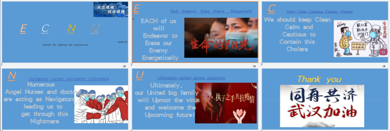 《英语语音与演讲》学生制作PPT阐述“ECNU”在疫情中的意义