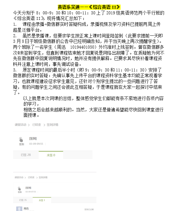 目前,外语学院在线教学工作仍在有条不紊地开展。精感石没羽,岂云惮险艰?“云端”路漫漫,唯有外语人同舟共济,同心同力,才能不畏挑战,共克时艰!