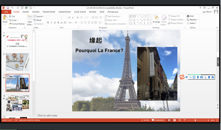 整个分享会主要分成四部分,第一部分是阮沁蓓关于求学进修的经验分享,这也是她的创业梦想起航阶段。刚进入华师大就学时,她便受到了外院师长的鼓励:要追求自己热爱的职业。在大三期间,她前往尼泊尔参加了义工工作,在那里她发现了自己对于甜点的热爱,为创业埋下了一颗种子。大四求职期间,她确定了自己想成为一名甜点师的职业规划,毅然决定继续学习深造。她搜集了许多甜点的资料,向行内的专家请教,并分析了自己作为一名外语学习者的优势,最终决定前往法国实现自己的甜点之梦。在法国的甜点学校,她接受了许多关于甜点的理论知识,也在指导者的带领之下进行了实习和实践。