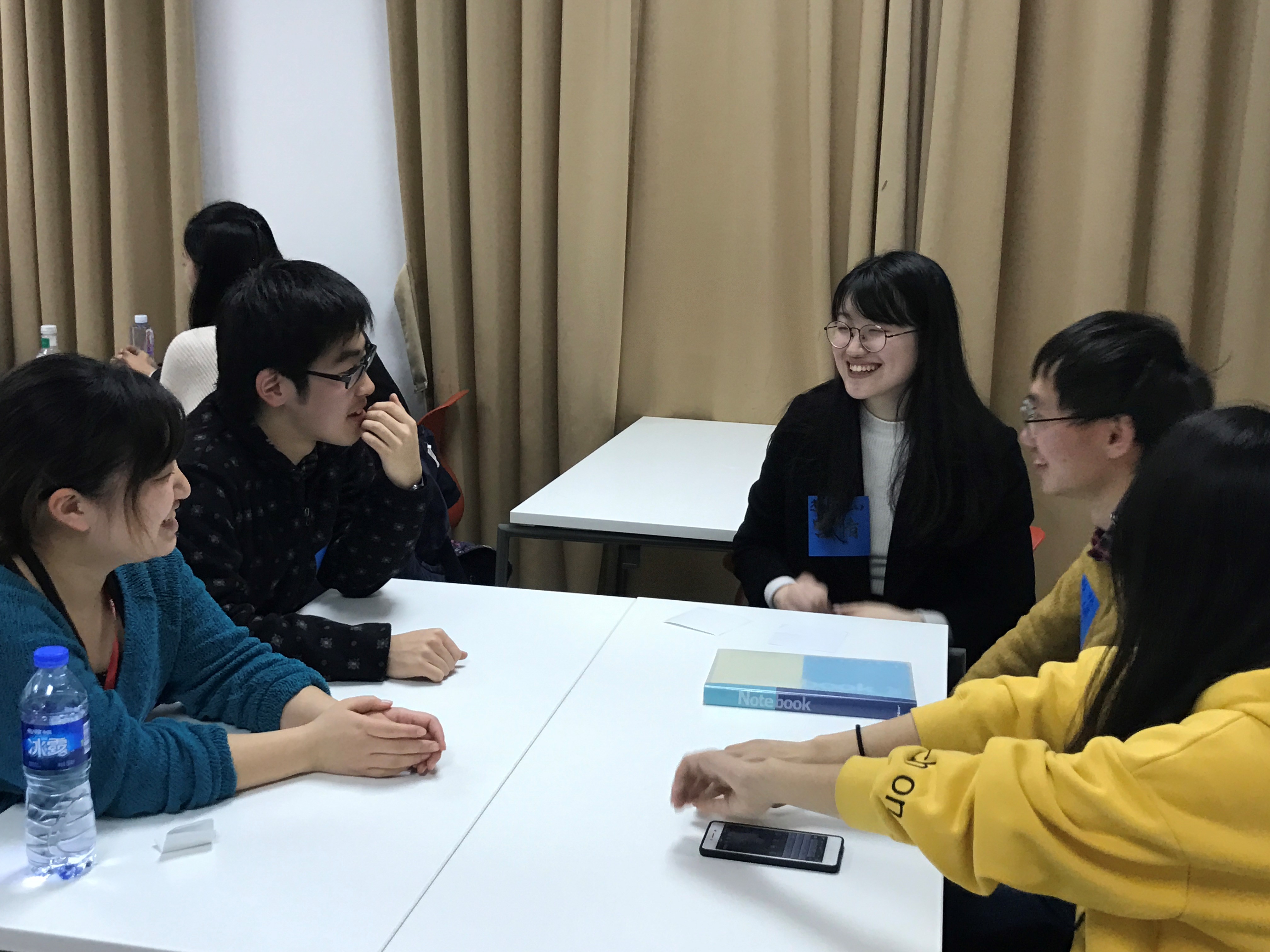 之后的交流会上,同学们首先自我介绍,之后结成小组讨论了中日的电影、书籍、美食等多个话题,学习了对方国家最新的流行语,并介绍了自己国家的流行文化,教室里充满了大家的欢声笑语,气氛十分热烈。