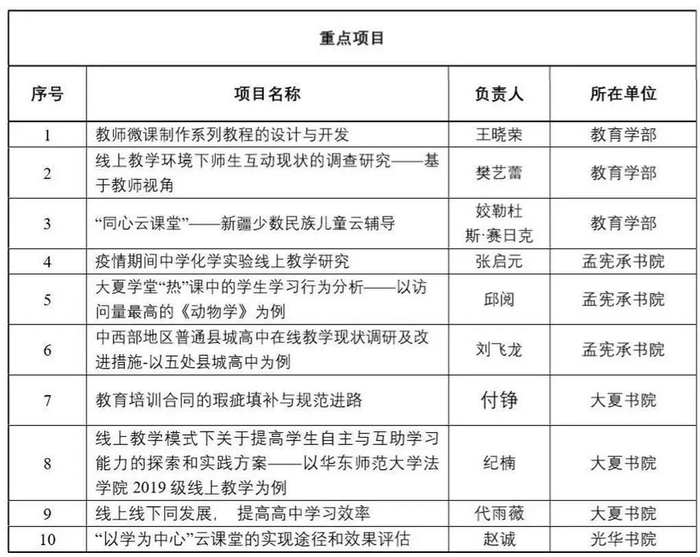 为鼓励同学们积极成为教育变革的参与者和推动者,关注我校和全国范围的线上授课,以不同方式从不同角度进行一些调研和思考,提出有价值的科学问题,探索解决办法,一起为教育信息化带来的教育创新贡献智慧,校团委面向全校学生开展“青春助力云课堂”科创实践专项赛,立项名单如下: