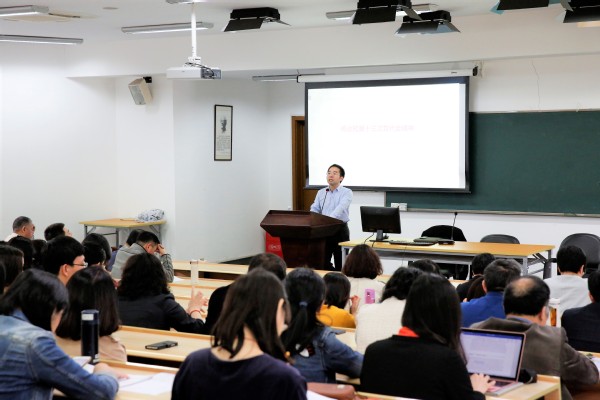 4月25日下午,外语学院在闵行校区外语学院333教室召开全院教职工大会,传达学习校第十三次党代会精神。会议由学院党委书记俞黎阳主持。