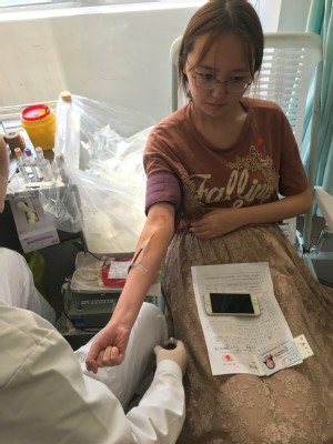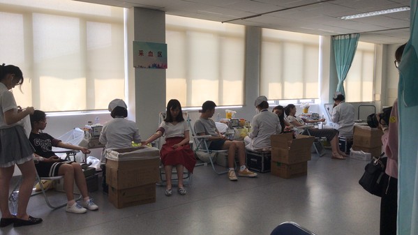 2018年5月16日,入夏后第二个高温黄色预警日,外语学院学生积极响应学校号召,99名同学在校医院顺利完成今年的献血活动,为公益事业献上自己的一份爱心。