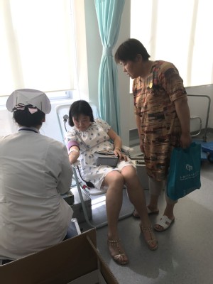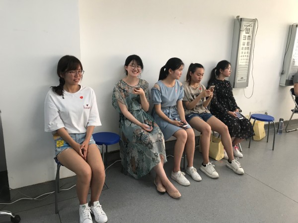 中午12点钟左右,同学们已在校医院门口排起了长长的队伍。大家有序听从医生的指示,依次通过检查。经过层层筛选,检测合格的同学光荣地被贴上爱心型的标志,走进献血室,排队等候献血。