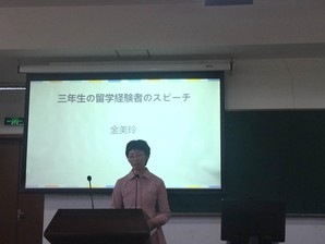 选手的演讲结束后经过了短暂的休息,请来了有过日本留学经验的前辈进行演讲,讲述了自己的留学生活体验与对后辈的建议,解答了各位对日本留学充满憧憬与期盼的同学们的问题,互动积极活跃,亲切的前辈,活泼的后辈,体现了日语系温馨和谐的氛围。