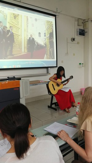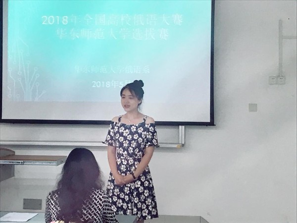 2018年5月30日下午1点,华东师范大学2018年俄语大赛复赛在闵行校区第二教学楼109教室正式举办。王亚民老师、贝文力老师、伊莲娜老师、李畅老师、班婕老师担任评委并为参赛选手们评比分数。