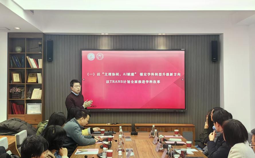 在交流研讨环节,与会人员围绕外语学院发展的重点与难点问题以及下一步发展方向,开展深入研讨。徐燕婷、刘俊升分别结合各自部门职能,就博士生培养、本科生“双语双科”拔尖人才培养等工作给予针对性指导,现场回应了学院提出的相关需求,为后续工作开展指明了方向。
