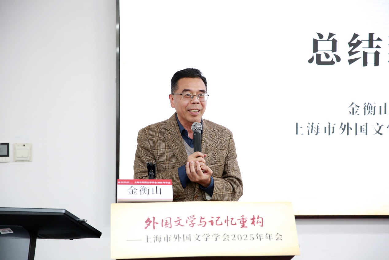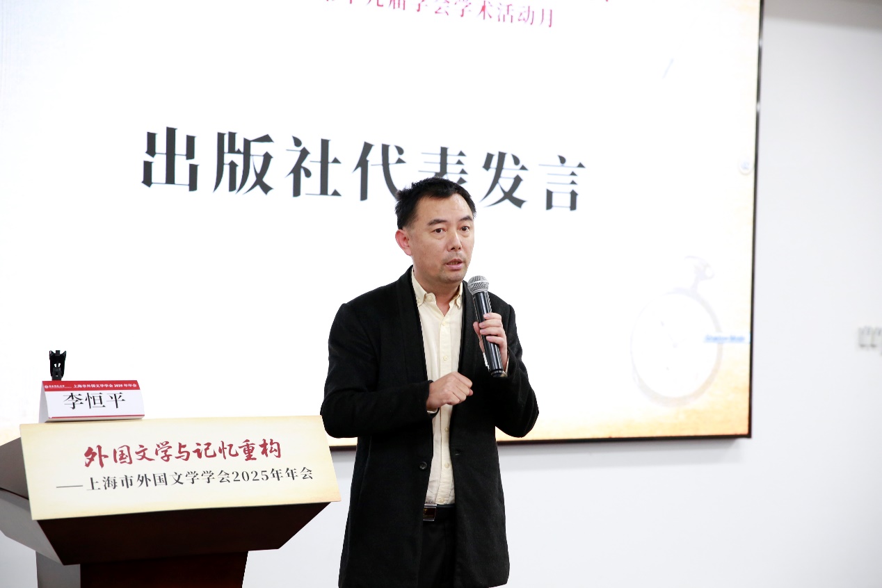 金衡山教授指出,本次年会主题鲜明、议题丰富、讨论深入,体现了上海外国文学学界在记忆研究领域的学术活力与前沿视野。他特别感谢华东师范大学外语学院的精心组织与各支持单位的鼎力协助,对文学跨学科发展提出新的期待,并呼吁学界继续深化合作,推动外国文学研究在服务国家战略、促进文明互鉴中发挥更大作用。上海外语教育出版社学术事业部编辑王晓宇、华东师范大学出版社高教与职教分社副社长李恒平先后发言,分别介绍了两家出版社与外国文学相关的学术图书资源,并欢迎参会学者积极与出版社开展交流与合作。