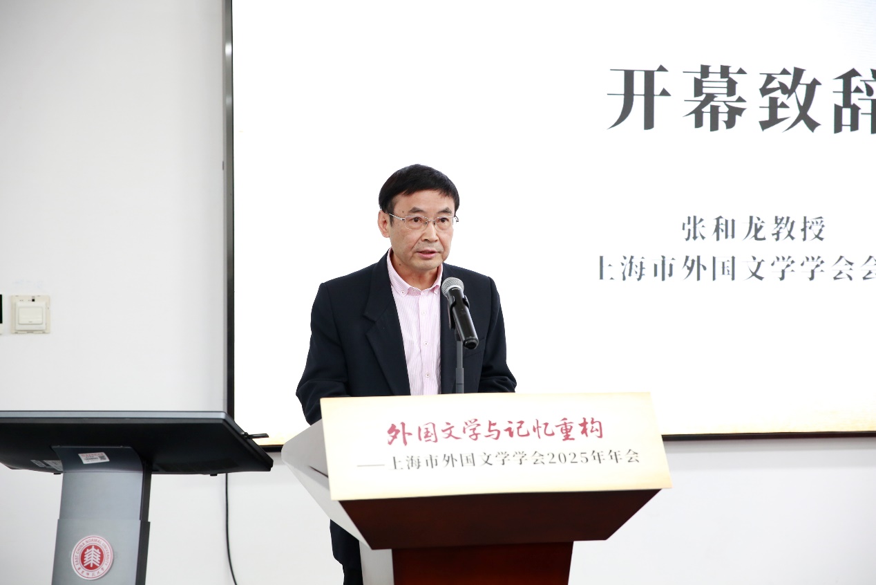会议开幕式由华东师范大学外语学院陈俊松教授主持。华东师范大学外语学院党委书记韩春红、上海市外国文学学会名誉会长李维屏教授、上海市外国文学学会会长张和龙教授先后致辞。