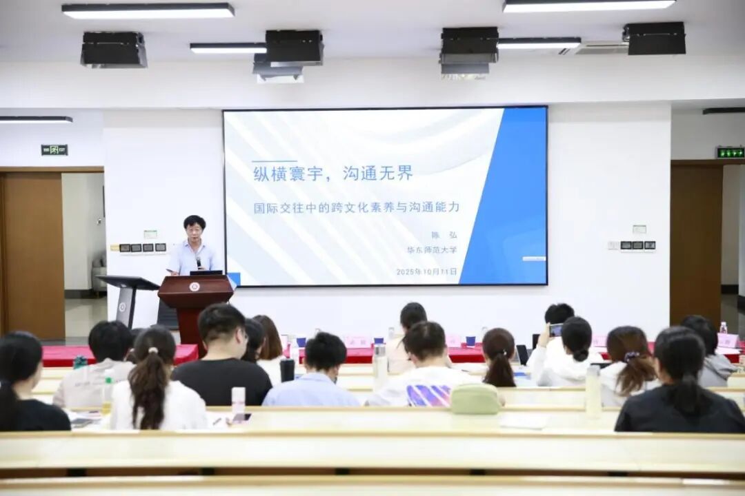 外语学院陈弘教授带来本次训练营第一讲《纵横寰宇,沟通无界:国际交往中的跨文化素养与沟通能力》。他强调,在国际交流中面对文化挑战,需讲好当下与未来的中国故事,以中国精神跨越文化鸿沟,向世界传递中国声音。陈教授指出,语言和文化习惯差异会对沟通效果产生显著影响,并向营员们分享实用沟通经验,用精准语言替代模糊表达,遵循各地区独特外交习惯以体现尊重与包容,重视倾听与总结,明确目标导向,从而在沟通中建立信任、促进合作。他表示,逻辑清晰、真诚尊重的表达是有效国际沟通的基础,鼓励同学们培养大国公民能力,成长为新一代国之栋梁。