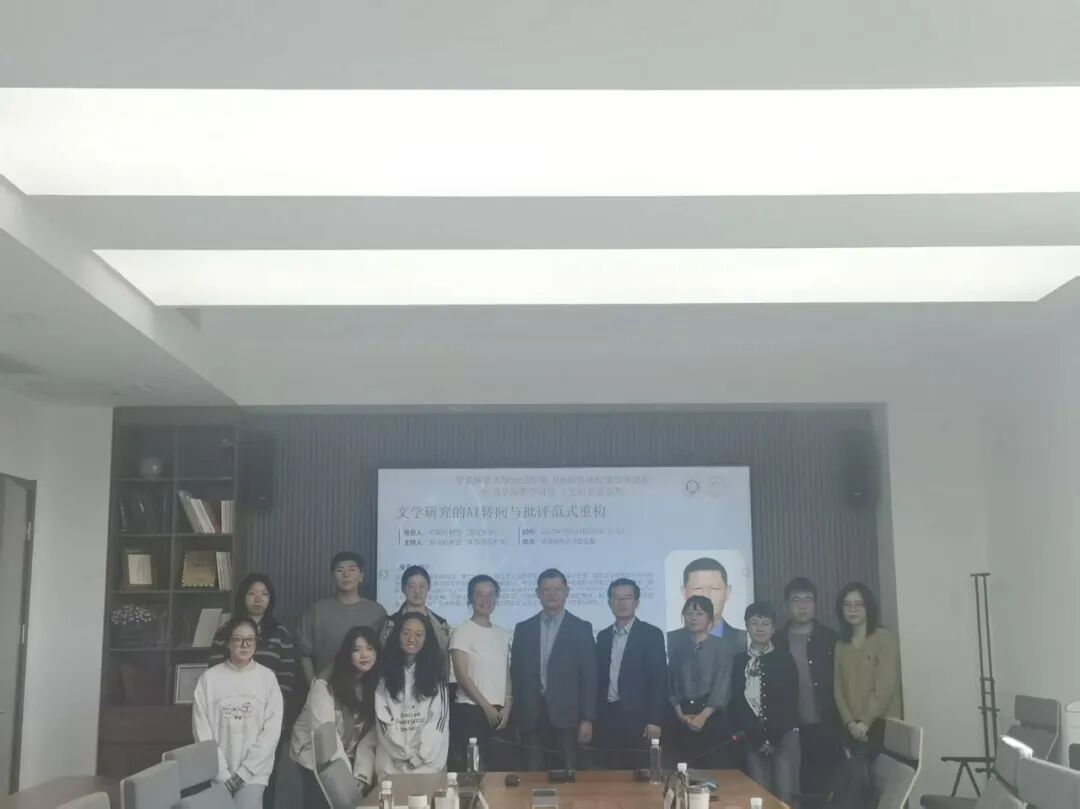 2025年10月24日上午,应华东师范大学外语学院邀请,浙江大学外国语学院教授、博士生导师、浙江大学世界文学跨学科研究中心主任杨革新教授,在外语学院319会议室做了题为“文学研究的AI转向与批评范式重构”的精彩讲座。本次讲座是华东师范大学百场校级学术讲座以及外语学院“聚学讲堂”文明互鉴系列讲座,由外语学院文学研究团队主办。本次讲座由英语系主任陈俊松教授主持,法语系金桔芳、德语系冯晓春、西班牙语教研室陈硕教师,以及外语学院多位在读硕士、博士研究生参与了讨论。
