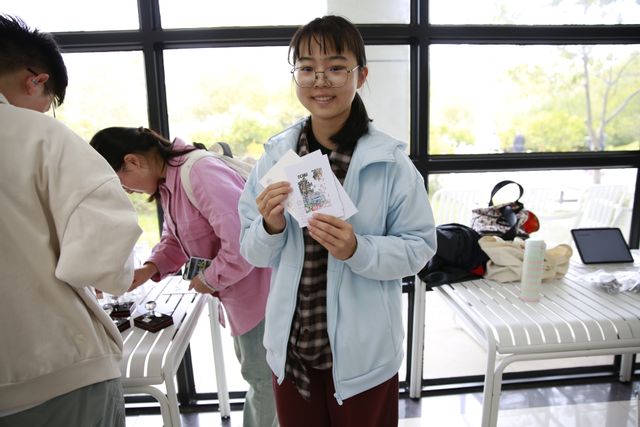 活动现场,“外语+文化传承”迷你市集吸引师生频频驻足。外语学院学生实践创新团队用创意让非遗文化焕发新生,语言与秋风、文化与橘香一同发酵成温暖的记忆。从古蜀文明到江南遗址,从古礼“投壶”的一掷风雅,到“非遗知识问答”的趣学互动,精巧的原创文创巧思独具,让文化可观、可感、可携。