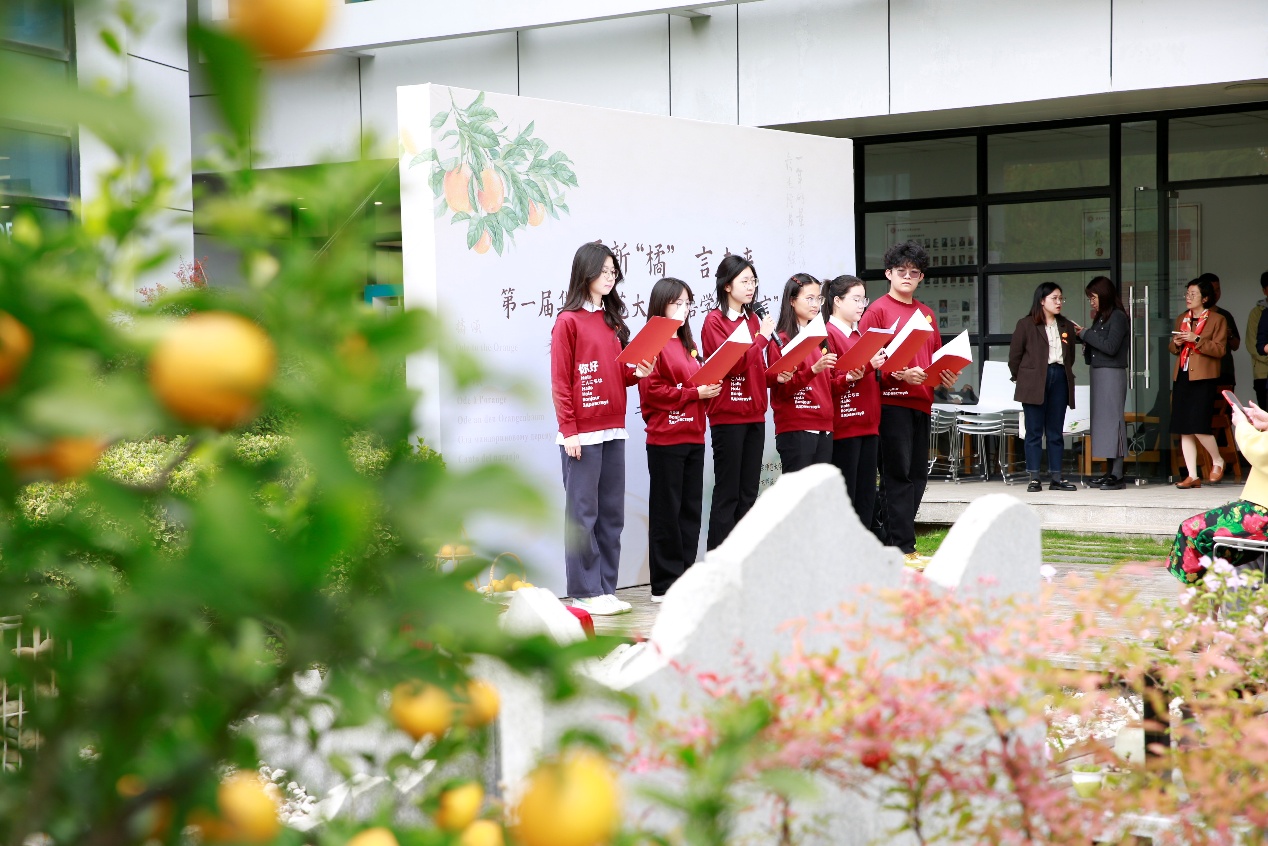曹友谊在启动仪式上致辞。他提到,本届“橘言”文化节,是将专业特色、校地合作与文化育人深度融合的生动实践。永宁橘园不仅是校园中一道独特的风景,更是承载文脉与使命的精神地标。以“橘”言志,希望外语学院能够以使命感为牵引,传承翻译家精神,紧抓时代变革机遇,以服务国家战略和区域发展为目标不断培养更多卓越外语人才,切实为强国建设、民族复兴伟业贡献力量;希望全体外院师生能够扎实专业本领,讲好中国故事,做中华文化的守护者,更要胸怀天下,用好语言桥梁,成为中国故事的精彩讲述者、传播者。同时,他对外语学院校友的关心支持表达感谢,期待各位校友常回母校,共同探索卓越外语人才培养的新路径。