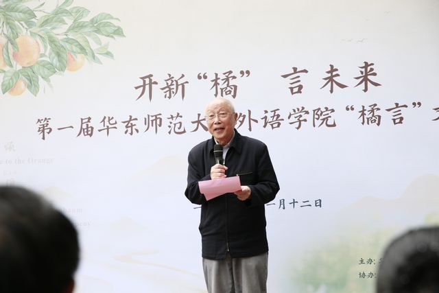 一缕橘香,沁润心田;多元文化,交融互鉴。永宁橘园不仅承载着春华秋实的自然韵律,更凝结着几代外院人的深厚情谊与育人初心。橘园发起人何敬业动情讲述了橘园背后的故事与文化内涵。作为土生土长的黄岩人,他回顾了永宁橘园的落成经过,提到了“永宁橘园”名字的深远涵义,表示永宁橘园既延续了黄岩千年宋韵,承载着黄岩对华东师大、对外语学院百年树人的美好祝愿,更寄托了一代代外语人对当今世界和平发展及构建人类命运共同体的美好夙愿。