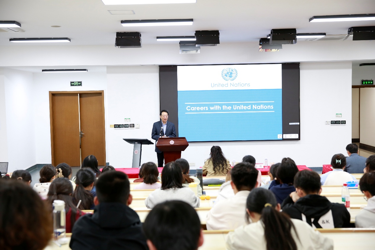 “橘言”育人论坛特邀纽约大学兼职教授、联合国语言部中文组前组长何勇教授开讲《联合国职业之路》。讲座介绍了联合国概况,聚焦国际视野拓展与职业规划,为国际组织人才培养开拓了思路、指明了方向。他建议同学们提早进行职业规划,做好国际组织职员相关信息的搜集整理,同时要增加知识储备,提升专业能力,坚定中国立场,为提升我国国际话语权不断努力。讲座由外语学院德语系主任、中欧文明互鉴中心主任王婀娜主持。