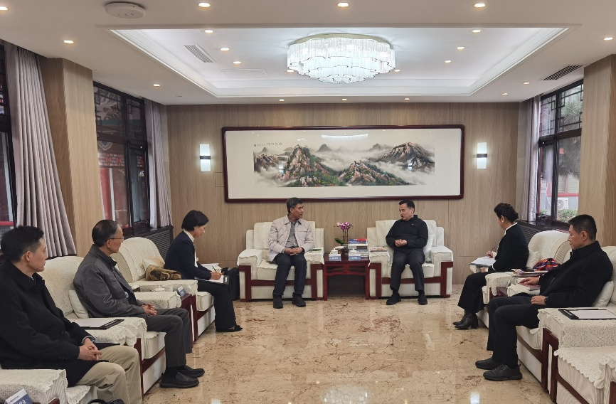 2025年11月7日上午,华东师范大学党委副书记孟钟捷一行拜访中国国家创新与发展战略研究会(以下简称“国创会”),与国创会副会长兼秘书长王博永,副秘书长胡伟,外语学院校友、国创院国际交流工作委员会主任张美芳交流座谈。双方围绕智库建设、国际交流与资源共享等议题展开深入探讨,并就多项合作内容达成共识。外语学院党委书记韩春红及相关领域专家学者出席会谈。