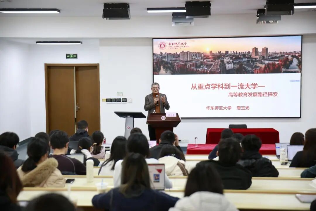在回顾我国学科建设历程时,唐教授梳理了从重点学科、211工程、985工程到“双一流”建设的政策演进,指出学科水平是高校核心竞争力的体现,也是国家教育强国战略的重要支撑。他特别提到,华东师范大学作为“双一流”建设高校,正以“育人、文明、发展”为使命,实施“卓越育人、卓越学术、卓越服务”三大工程,推动教育、科技、人才一体化发展。