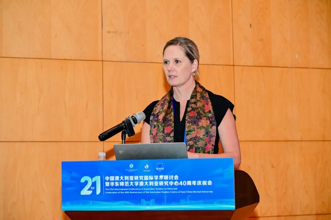 在华澳大利亚研究基金会主席Angela Lehmann发表了热情洋溢的讲话,她高度评价华东师范大学澳大利亚研究中心的重要工作,表示在华澳大利亚研究基金会将继续大力支持中国的澳大利亚研究事业,增进两国人民之间的互信与友好,推动中澳全面战略伙伴关系走向新的高度。