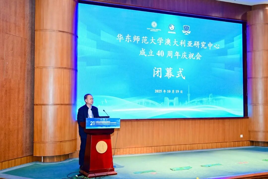 研讨会闭幕式由华东师范大学外语学院副院长赵刚教授主持。他代表主办方向与会专家学者致以衷心感谢。他提到,指出本次会议不仅议题多元、视角开阔,研究方法科学严谨,实现了学术探索与服务现实的有机结合,期待学界持续深化合作,共同推动澳大利亚研究迈向高质量、创新发展的新阶段。