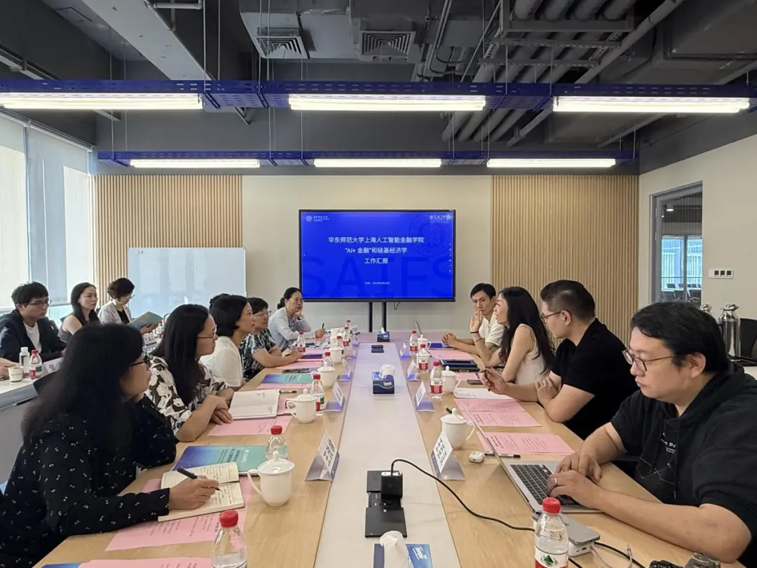 在上海人工智能金融学院,调研团在上海人工智能金融产业研究院副院长汤傲成的带领下开展实地参观与学习,直观感受人工智能与金融这一前沿交叉领域的最新发展动态。随后,上海人工智能金融学院及产业研究院院长邵怡蕾详细介绍了学院自成立 500 余天以来的快速发展历程,重点介绍了学院在人工智能与金融交叉领域构建的六大核心数据池及取得的多项核心成果,集中展现了人工智能金融领域的前沿发展水平与 “AI + 金融” 的多元应用场景。外语学院党委书记韩春红则围绕学院学科建设、人才培养、科学研究三大核心工作展开介绍,并重点介绍了近年来外语学科转型发展、推动 AI 赋能学科建设的相关实践与进展。在双方交流研讨环节,外语学院副教授邹航分享了学院在计算语言学领域的研究基础与最新成果,双方聚焦科研协同、人才培养等议题展开了富有建设性的研讨。
