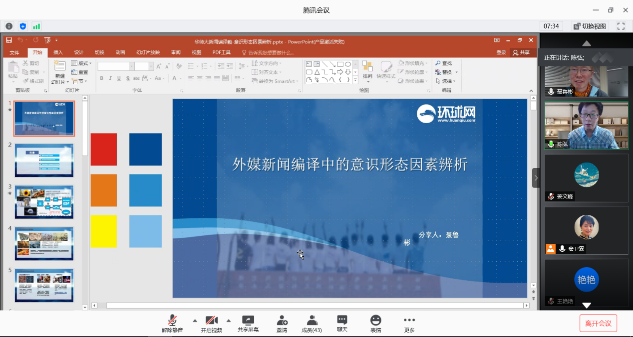 2020年6月10日下午3点,由翻译系主任陈弘教授主持的“新闻编译实践与技巧”系列线上讲座第三讲——“新闻编译中的思维导向因素辨析及案例讲解”在腾讯会议举行,本次受邀的主讲人为环球网海外传播中心舆情组主编聂鲁彬先生。